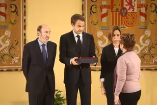 Acompañado por Rubalcaba y por la ministra de Defensa, Carme Chacón, Zapatero ha entregado un documento oficial de reconocimiento y una placa conmemorativa a los familiares de los fallecidos. Después del acto, tanto el presidente como los ministros se han quedado en el Salón de Tapices del Palacio de la Moncloa departiendo con ellos, dirigiéndose en primer lugar a las familias de los dos guardias civiles muertos en Afganistán el pasado agosto.