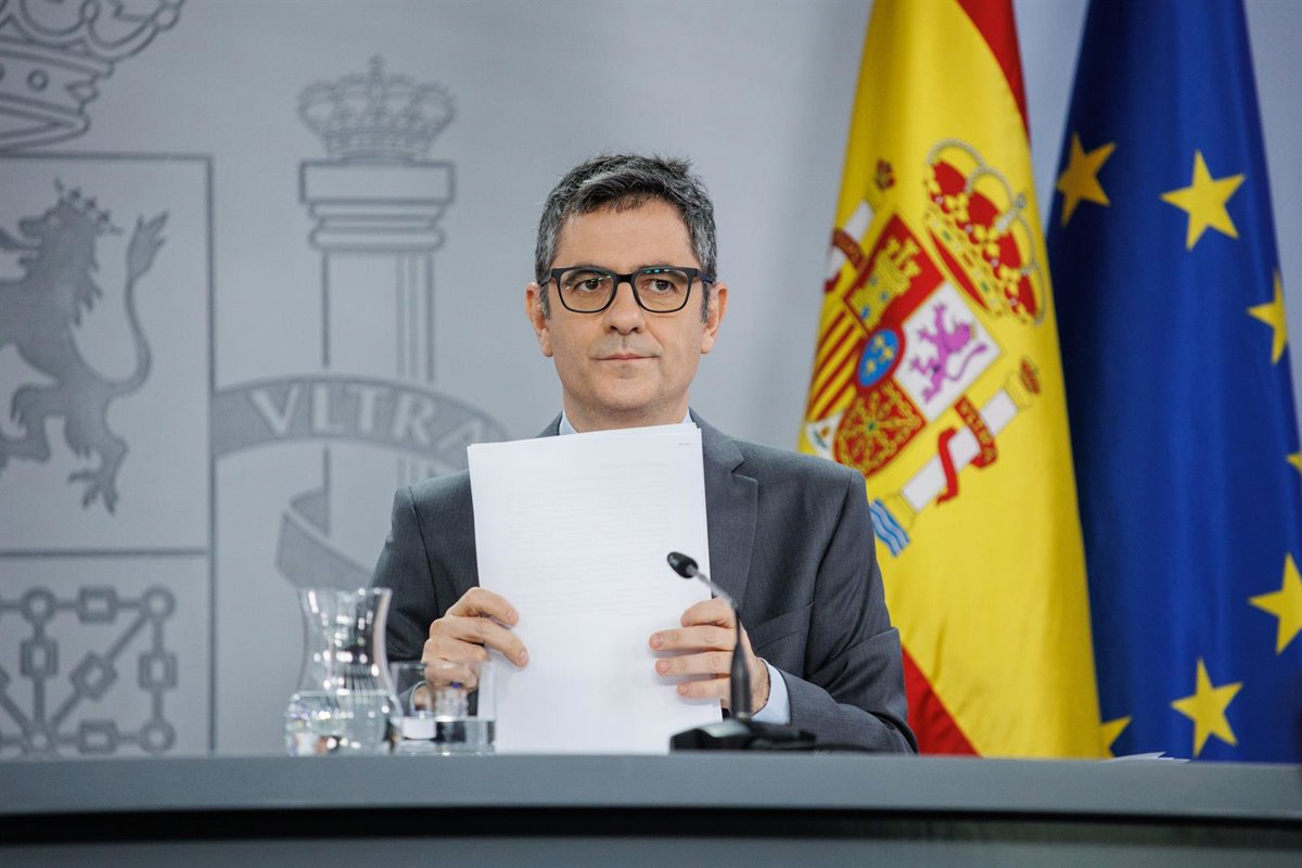 El ministro de la Presidencia, Relaciones con las Cortes y Justicia, Félix Bolaños, durante una rueda de prensa posterior a la reunión del Consejo de Ministros, a 23 de enero de 2024, en Madrid (España). - Alejandro Martínez Vélez - Europa Press