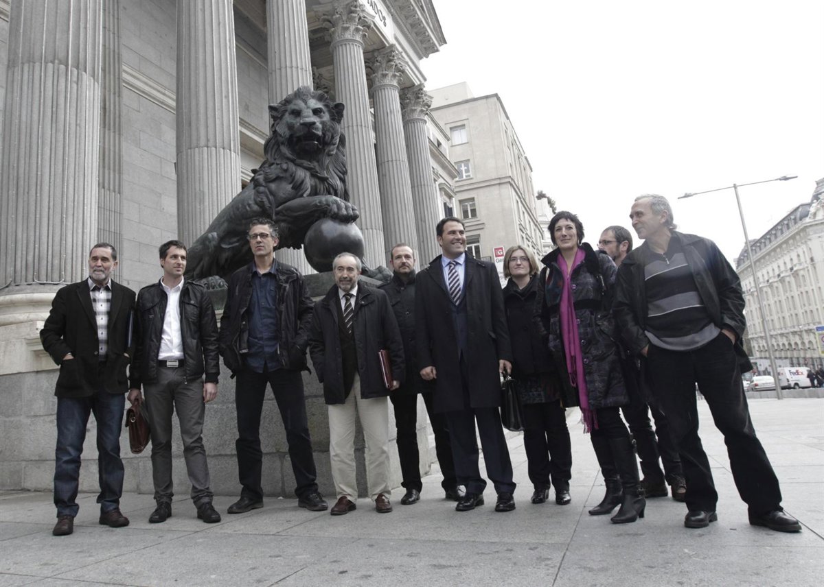 Los siete diputados de Amaiur, acompañados de sus tres senadores, llegaron al Congreso poco antes de las doce del mediodía. Primero posaron ante los fotógrafos en la Puerta de los Leones y después entraron en dependencias parlamentarias, una vez que mostraron sus credenciales a los policías que custodian la entrada.