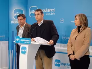 El secretario general del PP-A, Antonio Sanz, en rueda de prensa en Cádiz