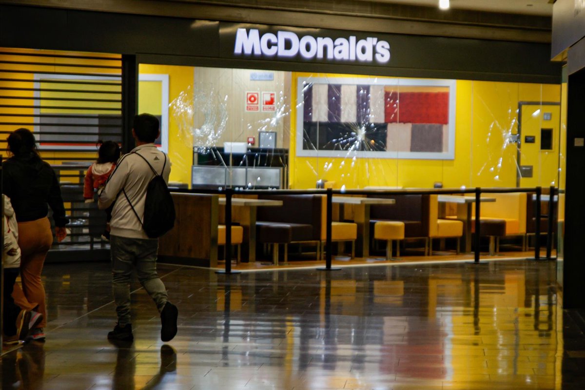 Archivo - Dos personas pasan delante del escaparate del McDonald's con los cristales rotos en el centro comercial Màgic Badalona, a 27 de marzo de 2024, en Badalona, Catalunya (España). Un hombre ha sido detenido este miércoles en el centro comercial Màgi - Kike Rincón - Europa Press - Archivo