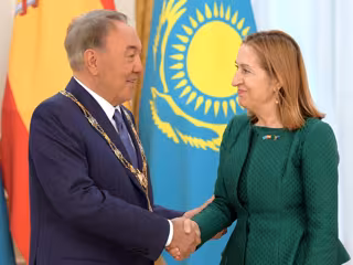 La presidenta del Congreso, Ana Pastor, ha mantenido este lunes un encuentro con el presidente de Kazajstán, Nursultán Nazarbayev, a quien ha impuesto el collar de la Orden de Isabel la Católica, concedido por el Gobierno español.