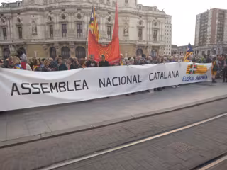 ANC Euskal Herria se ha concentrado este sábado en Bilbao para celebrar la llegada de la República catalana proclamada este viernes y ha reclamado la libertad de los presidentes de la Assemblea Nacional Catalana (ANC) y de Òmnium Cultural, Jordi Sánchez y Jordi Cuixart.