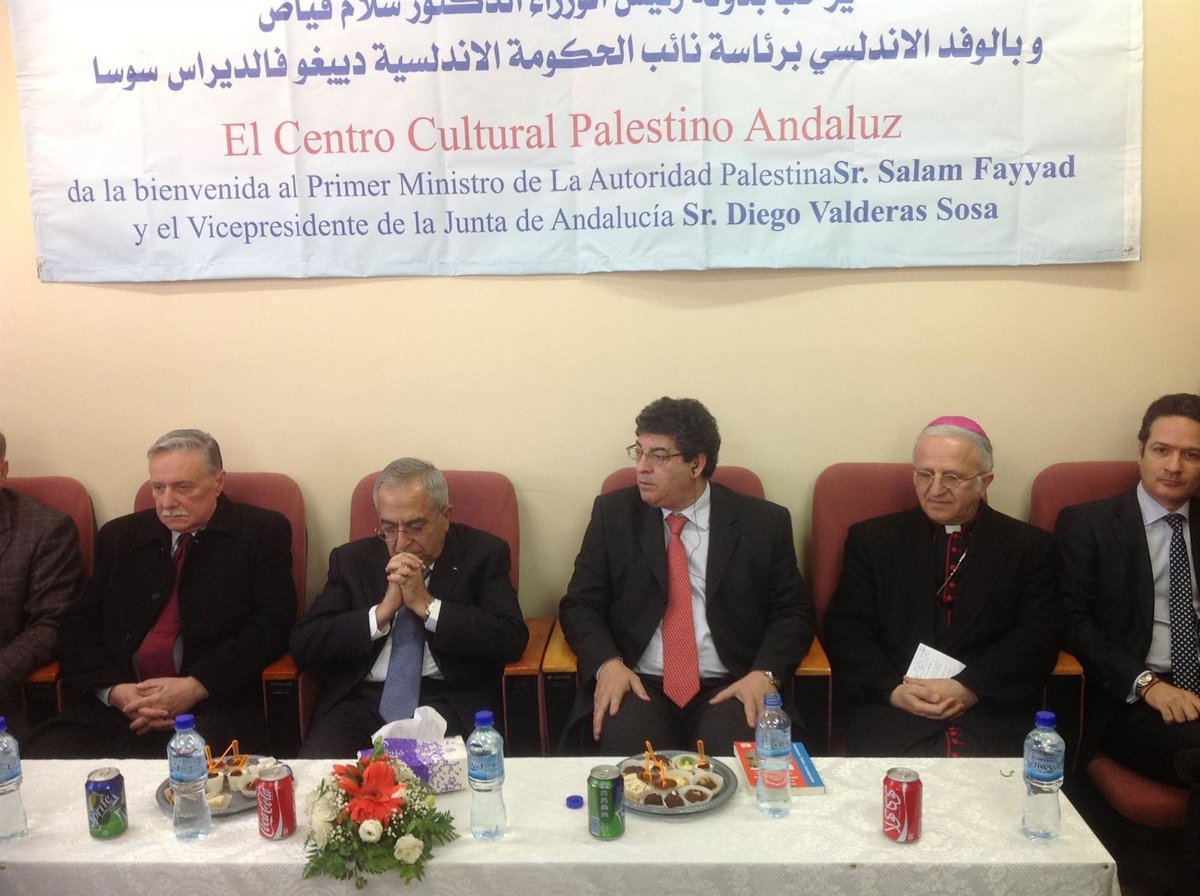 El vicepresidente y consejero de Administración Local y Relaciones Institucionales, Diego Valderas, en su segundo y último día en los territorios palestinos, ha inaugurado el Centro Cultural Palestino-Andaluz, acto al que han asistido el primer ministro palestino, Salam Fayyad, representantes del Consulado General de España en Jerusalén Este y de la Cooperación Española y el Patriarca Latino de Jerusalén.