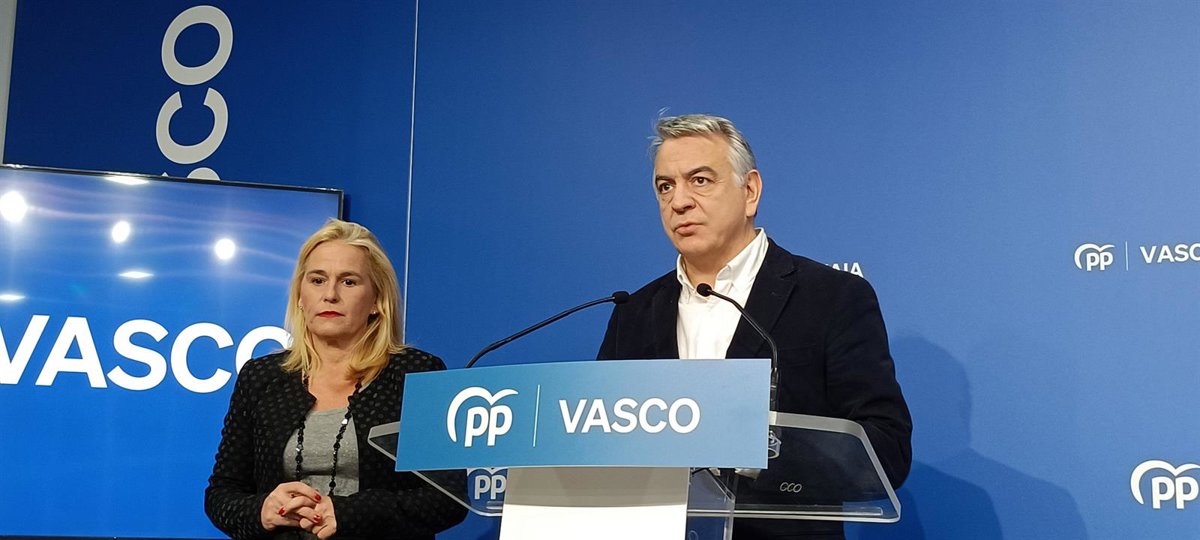 El presidente del PP vasco, Javier de Andrés, y la secretaria general de los populares vascos, Esther Martínez, en una rueda de prensa en Bilbao - EUROPA PRESS