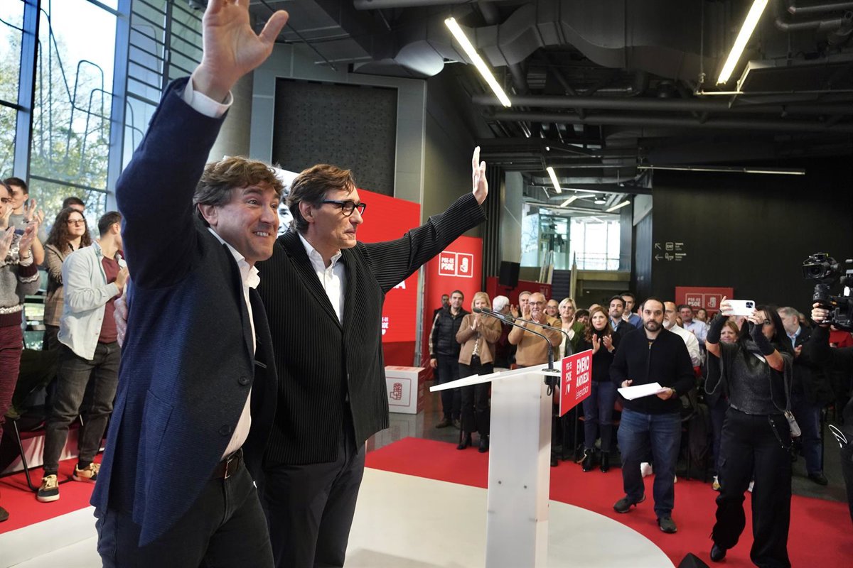 Archivo - El primer secretario y candidato del PSC, Salvador Illa y el secretario general del PSE-EE, Eneko Andueza - H.Bilbao - Europa Press - Archivo
