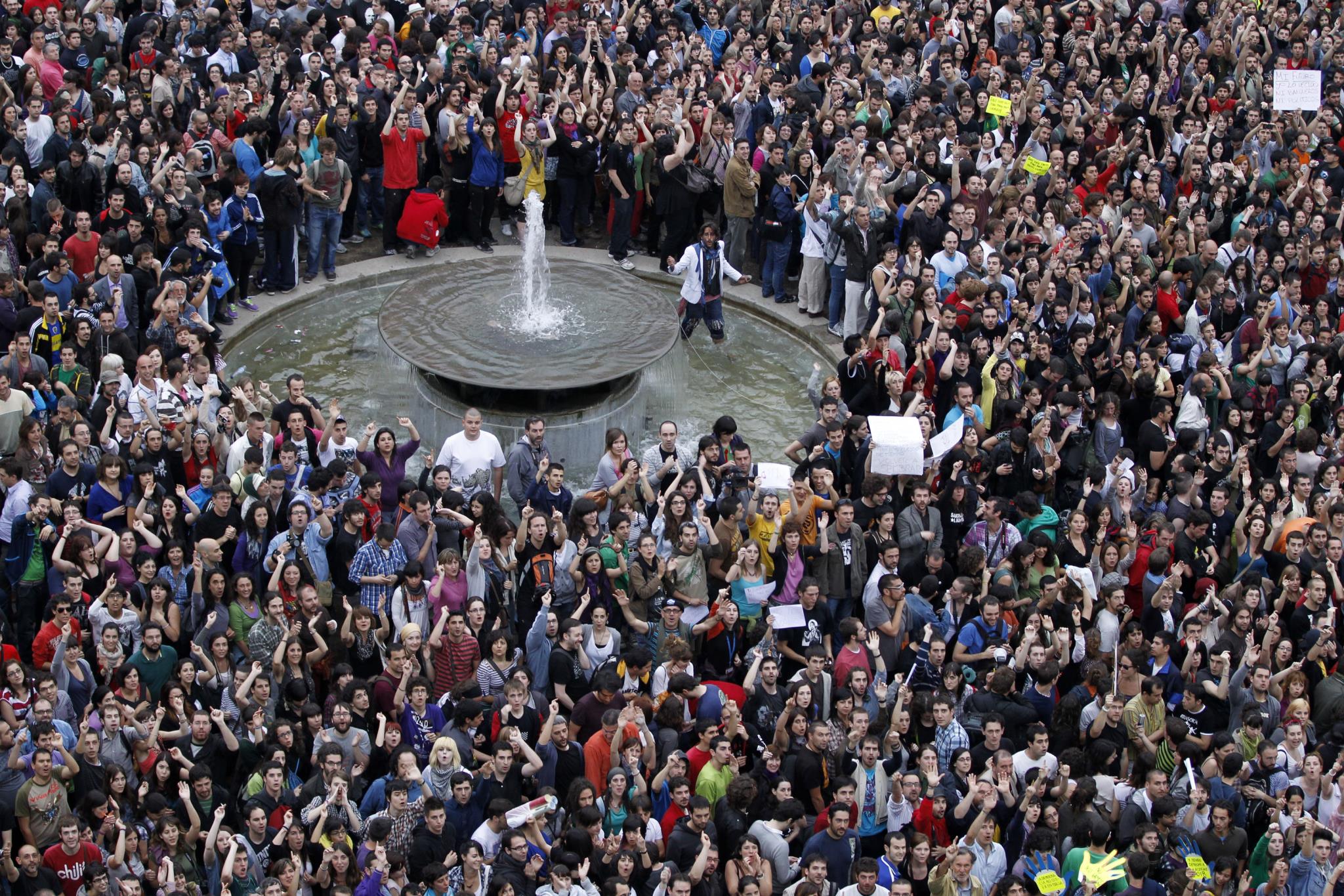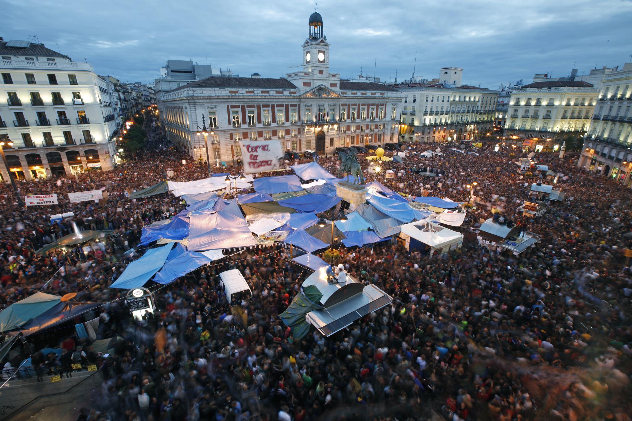 El movimiento, iniciado en Madrid, se extendió a numerosas ciudades españolas y su repercusión ocupó portadas de medios internacionales e incluso propició protestas en varias ciudades extranjeras. Las concentraciones y la acampada en Sol pasaron de contar con apenas medio centenar de 'indignados' a colapsar el centro de Madrid con alrededor de 16.000 personas.