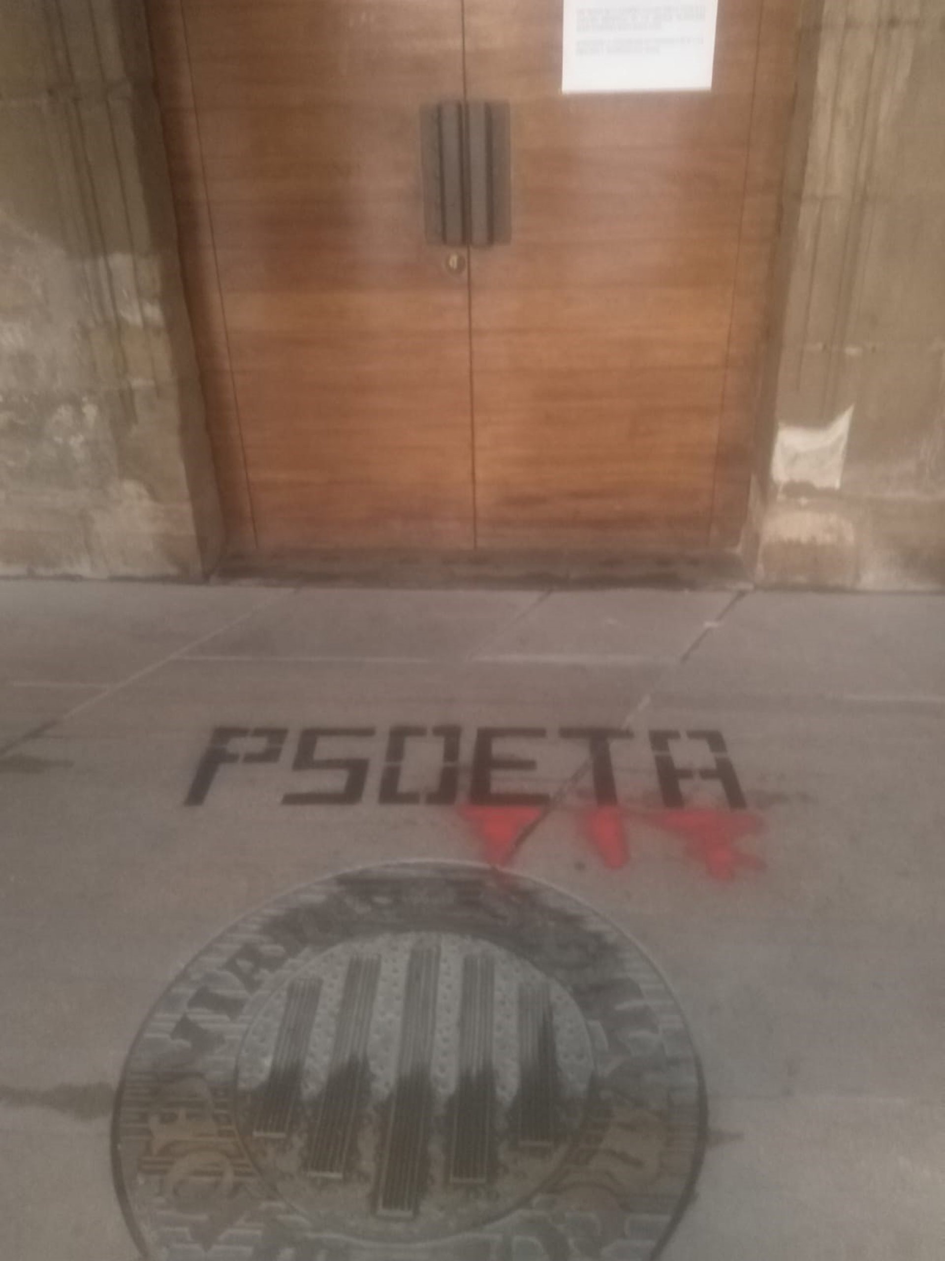 El PSN ha condenado la aparición de unas "lamentables pintadas" aparecidas en la puerta del Ayuntamiento de Viana con el mensaje 'PSOETA'.