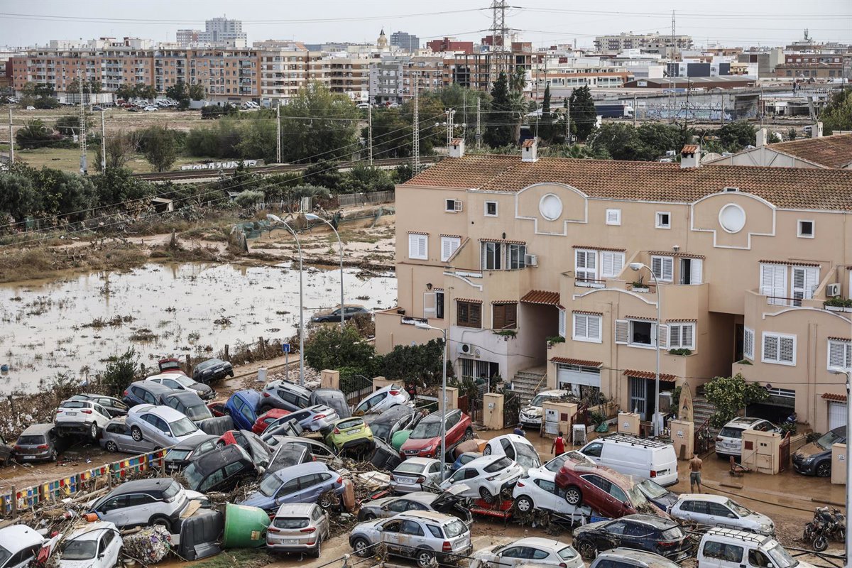Decenas de vehículos acumulados tras el paso de la DANA en el barrio de la Torre - Rober Solsona - Europa Press