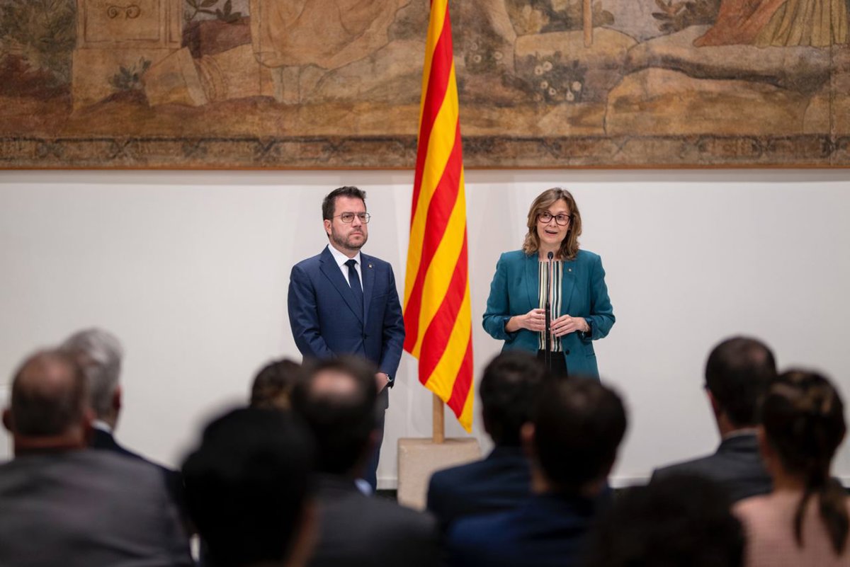 El presidente de la Generalitat, Pere Aragonès, y la consellera de Acción Exterior de la Generalitat, Meritxell Serret, en la clausura de la semana de los delegados del Govern en el Exterior en Barcelona - LORENA SOPENA - EUROPA PRESS