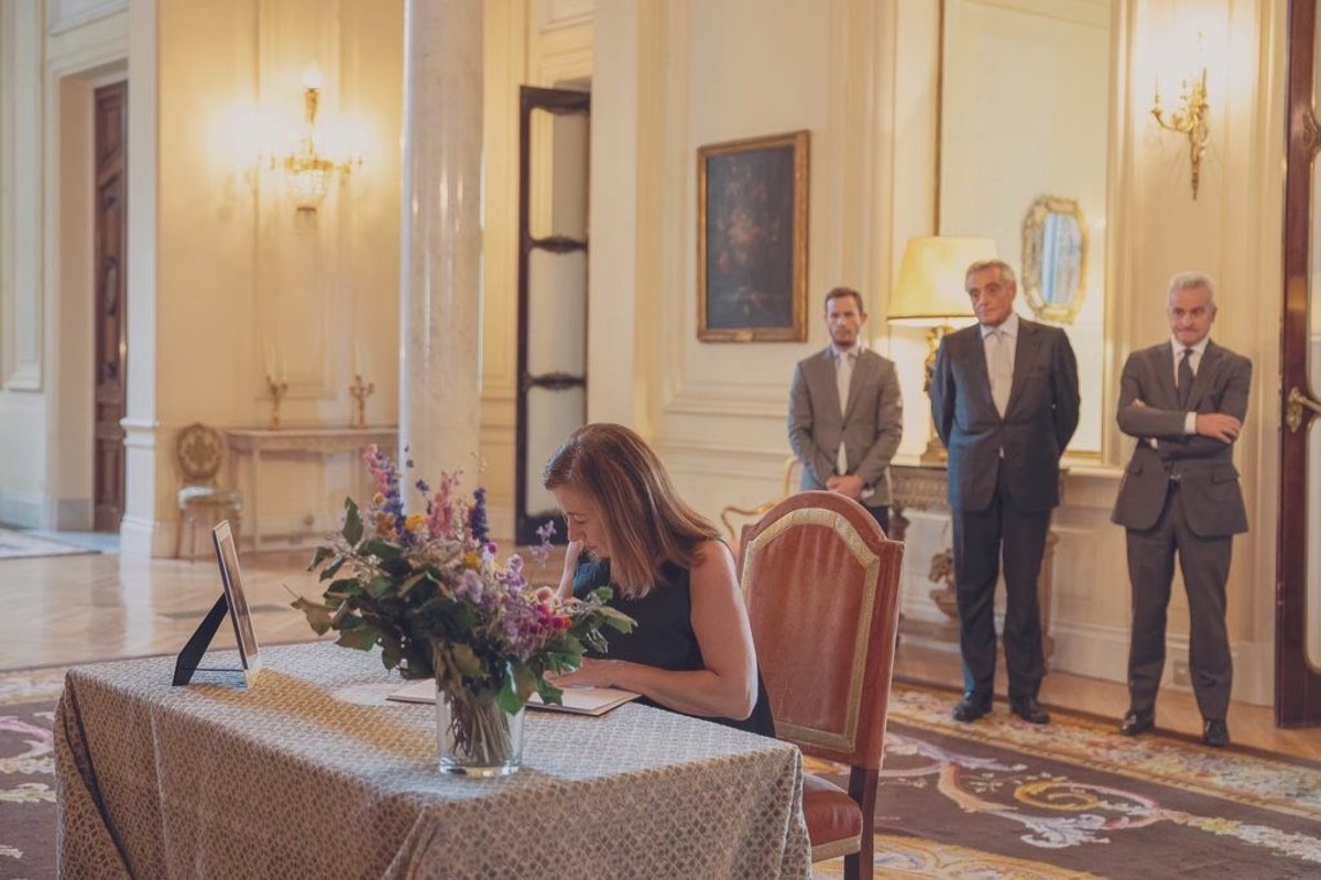 Armengol, tercera autoridad del Estado, ha querido acercarse a la embajada de Italia en Madrid para firmar en el libro de condolencias y expresar su más sentido pésame en nombre de las Cortes Generales.