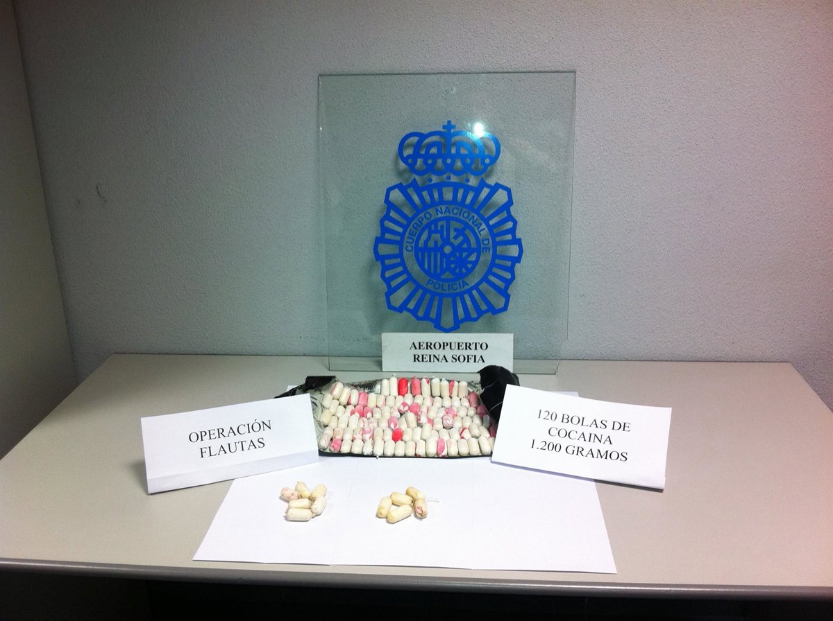 M.C.C., varón de 34 años, A.M.G.P., mujer de 45 años, ambos por correo de drogas, y a J.T.L., varón de 46 años, por un presunto delito de tráfico de estupefacientes han sido arrestados por efectivos del Cuerpo Nacional de Policía en la operación Flautas que se ha desarrollado en el aeropuerto Tenerife Sur y en el que se aprendieron 120 cápsulas de cocaína.