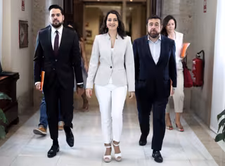 Los diputados de Ciudadanos Fernando de Páramo, Inés Arrimadas y Miguel Gutiérrez, se dirigen a la Junta de Portavoces del Congreso de los Diputados en Madrid (España), a 10 de septiembre de 2019. - Eduardo Parra - Europa Press