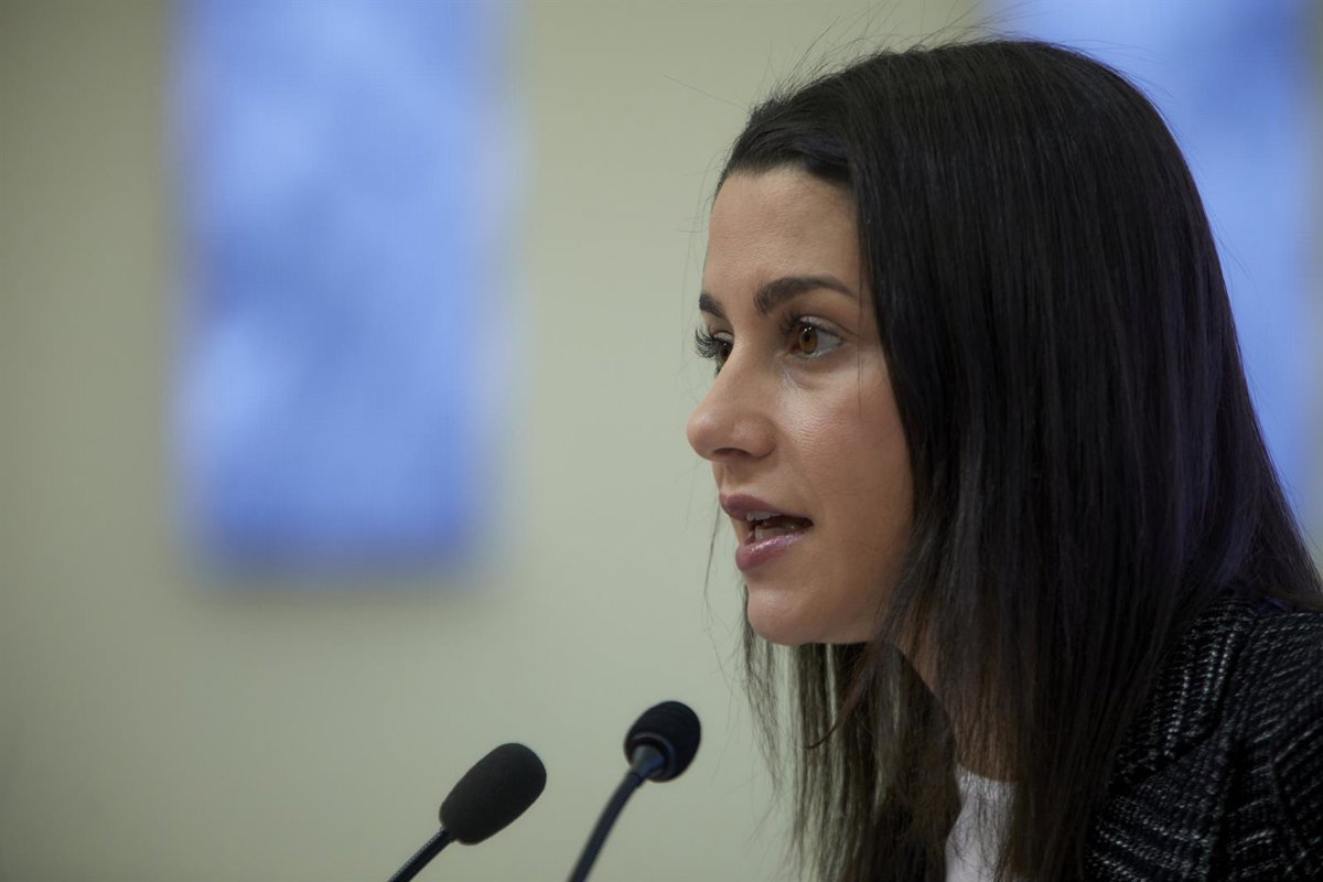 La presidenta de Ciudadanos, Inés Arrimadas, durante una rueda de prensa en la sede del partido en Madrid. - Jesús Hellín - Europa Press