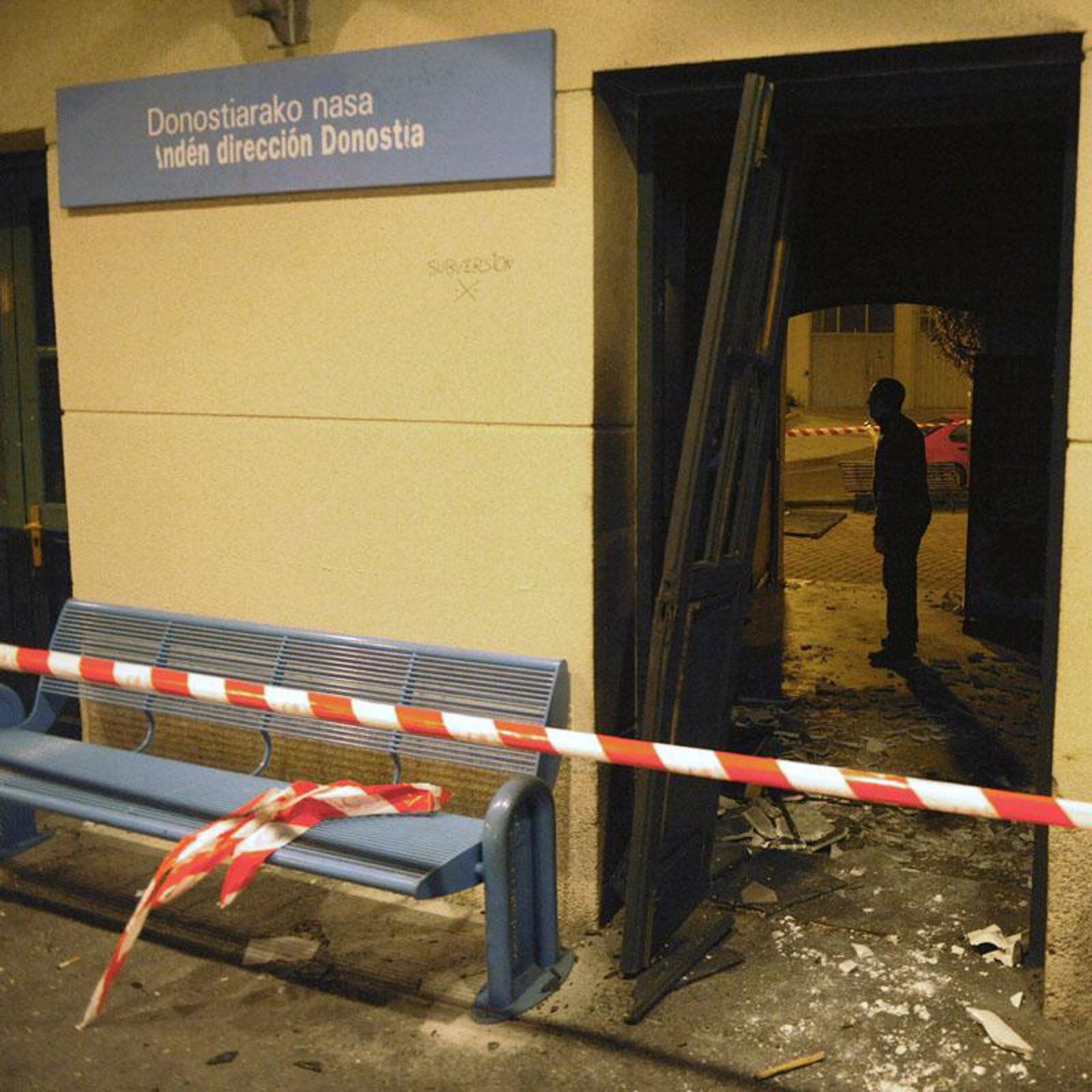 La primera explosión, que no estuvo precedida de aviso previo, ocurrió a las 00.30 horas en la calle Geltoki de Berri, donde se ubica la estación del Euskotren. Se trata de una línea de ferrocarril de vía estrecha que une esta localidad vizcaína con San Sebastián y Bilbao.