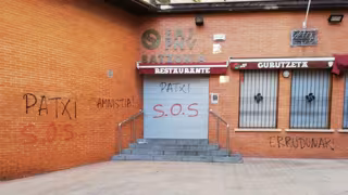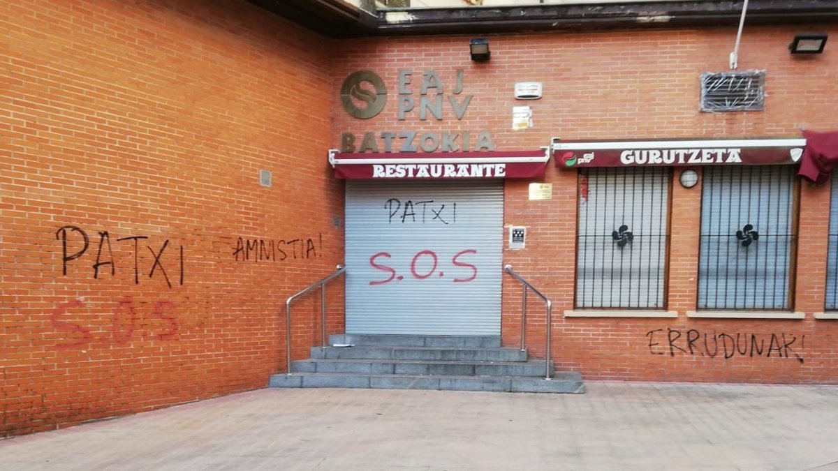El PNV ha informado de que, "amparados por la oscuridad", desconocidos han escrito en las fachadas del establecimiento proclamas como 'Patxi S.O.S', 'Amnistia' y 'Errudunak' (culpables), y los jeltzales critican que se les achaque que ellos tengan "algo que ver con esta situación".