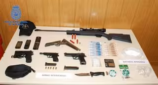 En estas viviendas fueron intervenidas una escopeta con cañones recortados, que supuestamente utilizaban en los robos, un rifle de precisión, cuatro armas simuladas --tres pistolas y un rifle de precisión--, dos machetes, así como prendas para la ocultación del rostro, 200 gramos de sustancia de corte y diversos útiles para la manipulación de sustancias estupefacientes.