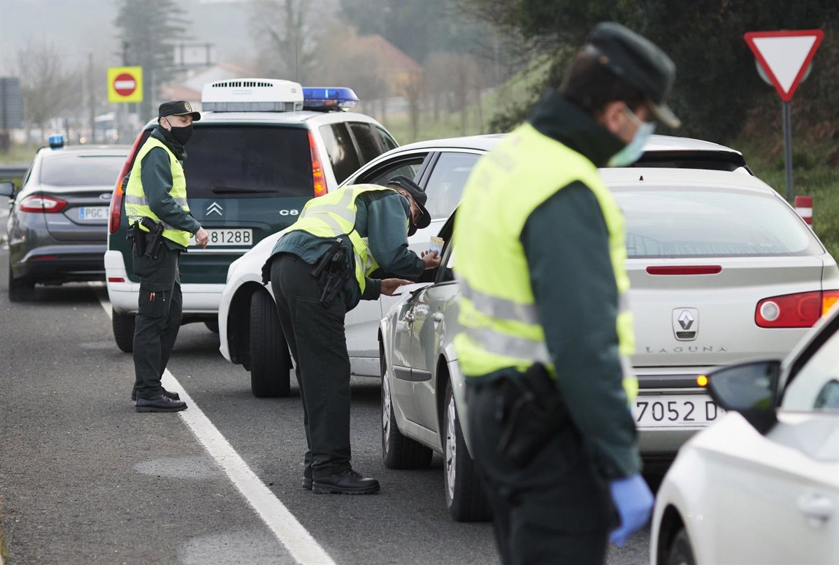 Agentes de la Guardia Civil piden la documentación a varios vehículos durante un control en Cantabria por la Covid-19 - Juan Manuel Serrano Arce - Europa Press