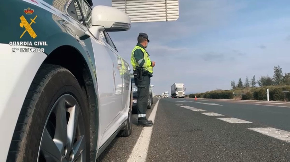Un agente de la Guardia Civil junto a su coche en una carretera. - GUARDIA CIVIL