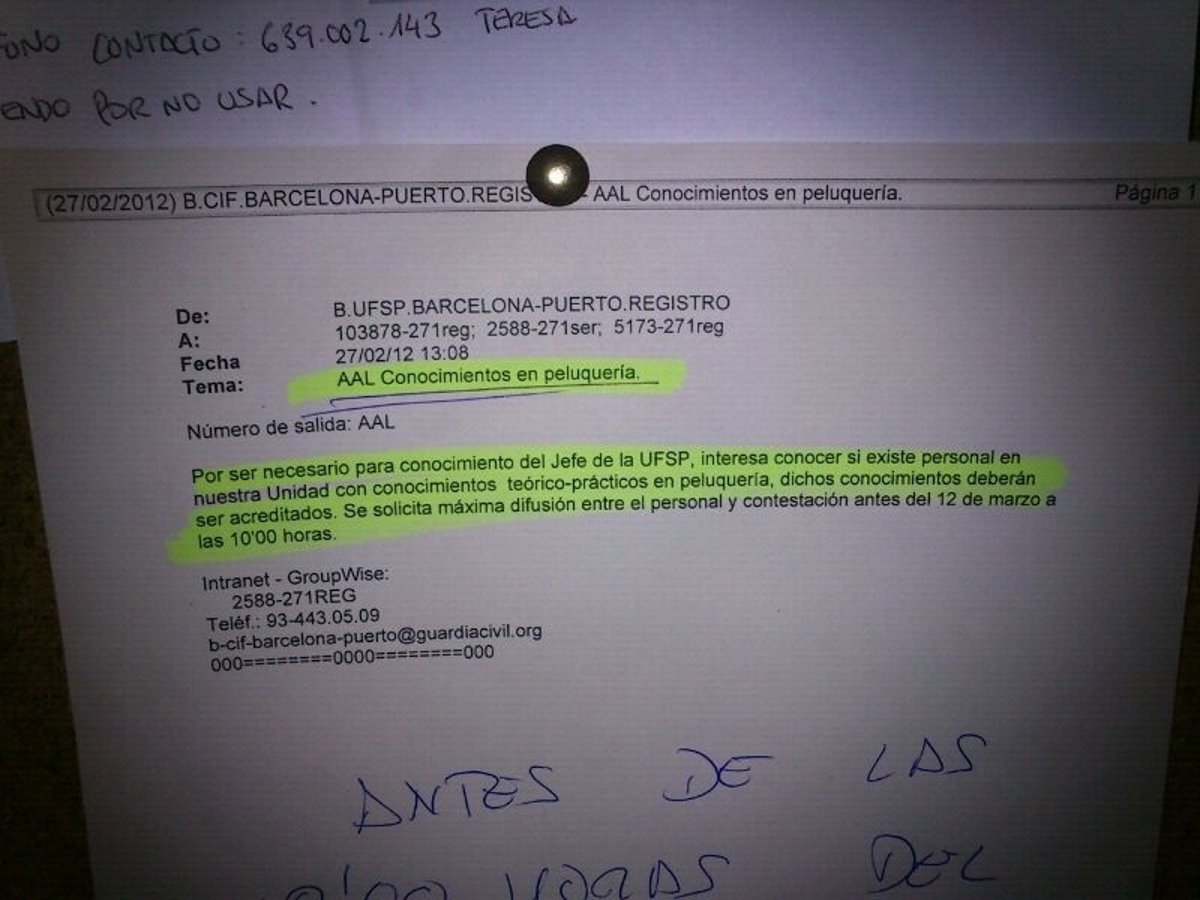 "Por ser necesario para conocimiento del Jefe de la UFSP, interesa conocer si existe personal en nuestra unidad con conocimientos teórico-prácticos en peluquería, dichos conocimientos deberán ser acreditados. Solicita máxima difusión entre el personal y contestación antes del 12 de marzo a las 10:00 horas", es el texto que, tal y como ponen de manifiesto, ha sido difundido a modo de circular interna y publicado en el Puerto de Barcelona esta semana.