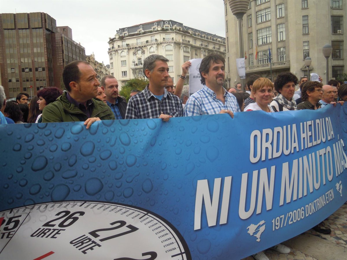 En la concentración, convocada por partidos políticos, sindicatos nacionalistas y organizaciones sociales, han tomado parte, entre otros, el presidente de Sortu, Hasier Arraiz, su portavoz, Pernando Barrena, así como otros representantes políticos como Maribi Ugarteburu, Dani Maeztu, Oskar Matute, Pello Urizar, además de la secretaria general de LAB, Ainhoa Etxaide.