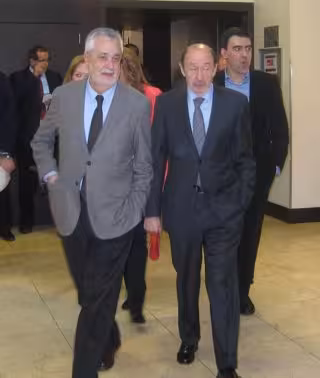El secretario general del PSOE, Alfredo Pérez Rubalcaba, expresa su apoyo a la iniciativa del presidente andaluz y secretario general del PSOE-A, José Antonio Griñán, sobre el 'pacto por Andalucía', como "alternativa al ejercicio abusivo de la mayoría absoluta" que, en su opinión, está haciendo el Gobierno de Mariano Rajoy.