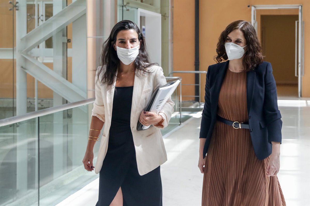 Archivo - La presidenta de la Comunidad de Madrid, Isabel Díaz Ayuso; y la portavoz de Vox en la Asamblea, Rocío Monasterio - Ricardo Rubio - Europa Press - Archivo