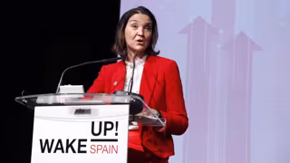 La ministra de Industria, Comercio y Turismo, Reyes Maroto en el en el foro 'Wake Up! Spain', organizado por 'El Español'.