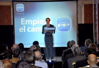 Durante un acto en París con militantes del PP, el presidente de honor de los populares ha enfatizado que su partido "es la esperanza que España necesita" y ha subrayado que "el país necesita una gran mayoría, un cambio político" y que Mariano Rajoy "sea presidente".
