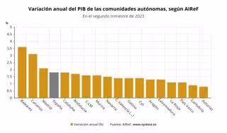 La Autoridad Independiente de Responsabilidad Fiscal (AIReF) ha publicado este lunes la estimación del PIB de las comunidades para el segundo trimestre del año, en la que se prevé que Baleares, Canarias, Madrid y Cataluña sean las cuatro regiones que más crezcan en tasas interanuales, por encima de la media nacional del 1,8%.