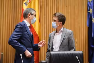 El gobernador del Banco de España, Pablo Hernández de Cos, junto al presidente de la Comisión para la auditoría de la calidad democrática, la lucha contra la corrupción y las reformas institucionales, Íñigo Errejón - CONGRESO