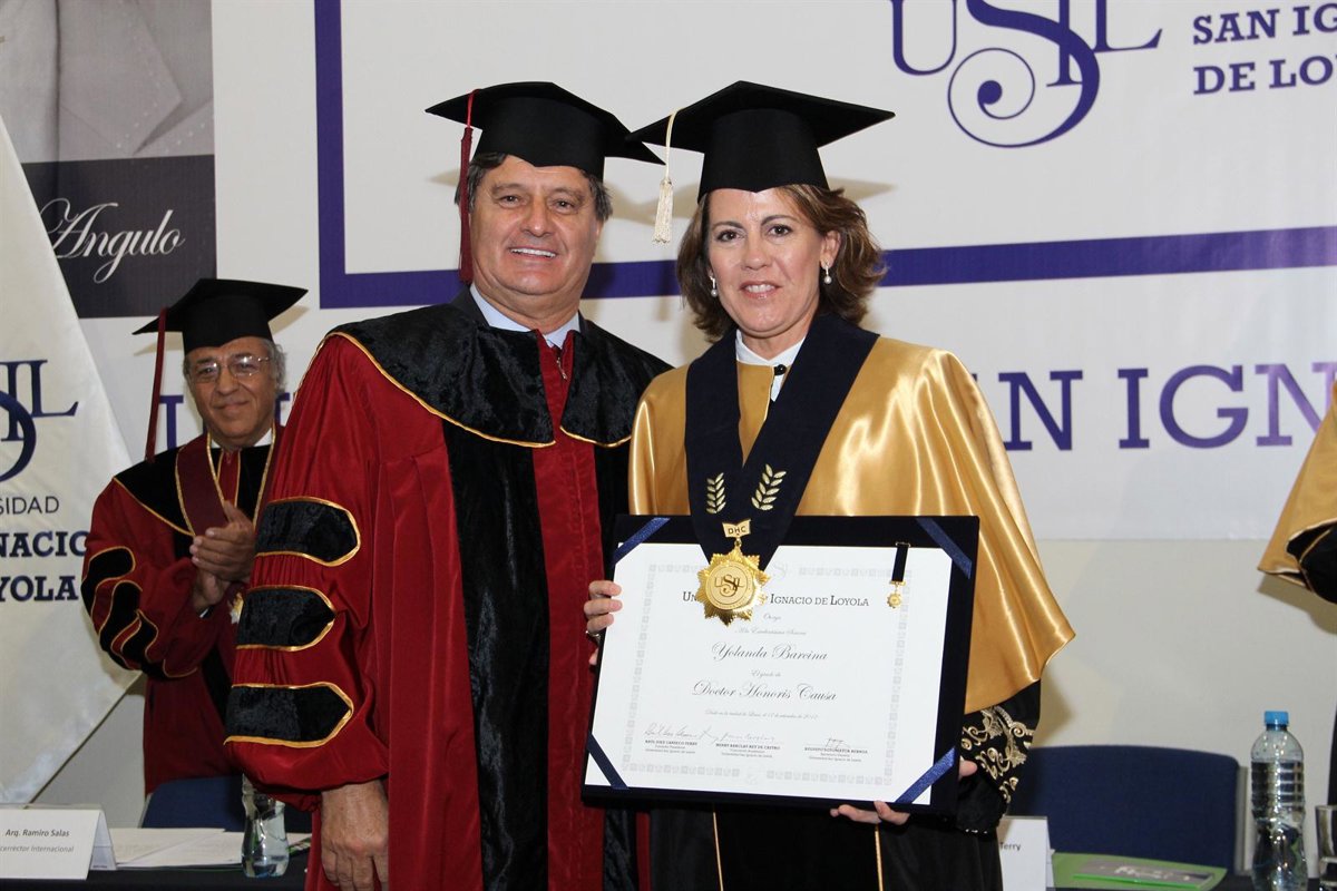 La presidenta de Navarra, Yolanda Barcina, ha sido investida como doctora honoris causa por la Universidad San Ignacio de Loyola de Lima (Perú) en un acto celebrado este pasado lunes, 17 de septiembre, en el campus del país suramericano y en el que también se ha distinguido con el mismo título honorífico al presidente de CaixaBank, Isidro Fainé.