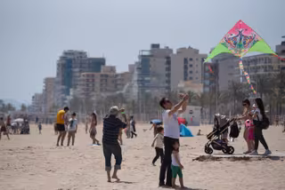 Archivo - Varias personas participan en un festival de cometas en la playa de Gandia, a 16 de abril de 2022, en Gandía, Valencia, Comunidad Valenciana (España). El Festival de cometas gigantes o cachirulos es típico de las Pascuas, y se lleva a cabo t - Jorge Gil - Europa Press - Archivo