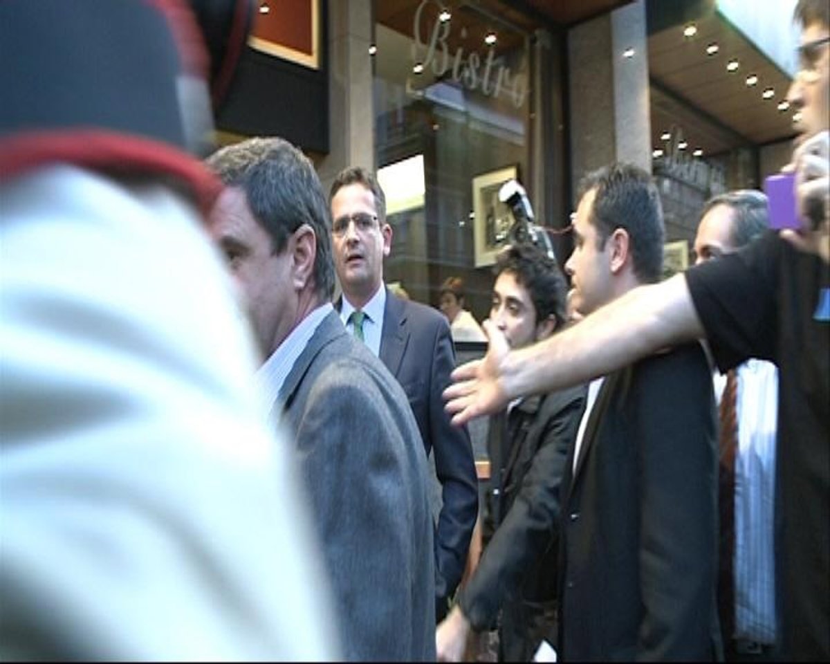 A la salida del establecimiento hostelero, el hermano de Urrusolo Sistiaga se ha dirigido a Basagoti llamándole por su nombre de pila, a lo que el dirigente popular le ha respondido "pide perdón".