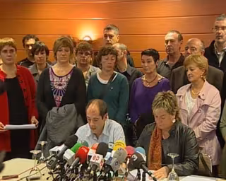 El coordinador de Lokarri, Paul Ríos, y la portavoz de STEE-EILAS, Belén Arrondo, han dado lectura a este manifiesto en una comparecencia en Bilbao, en la que han estado acompañados por una treintena de las personas que se han adherido a esta iniciativa, entre ellos abogada y miembro de la izquierda abertzale Jone Goirizelaia; el portavoz de Alternatiba, Oskar Matute; el juntero de Aralar Iosu Murgia; la secretaria general de LAB, Ainhoa Etxaide; el secretario general de ELA, Adolfo Muñoz; o el periodista Martxelo Otamendi.