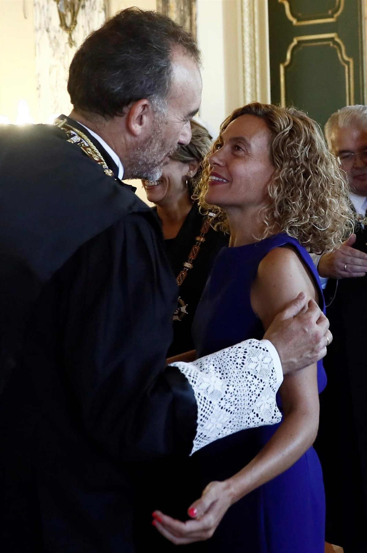 El presidente de la Sala de lo Penal del Tribunal Supremo Manuel Marchena (i), y la presidenta del Congreso de los Diputados, Meritxell Batet, durante el acto de apertura del año judicial, esta mañana en el Tribunal Supremo. - Pool
