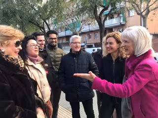 La presidenta del Congreso, Meritxell Batet, con la alcaldesa de Esplugues de Llobregat, Pilar Díaz, hablan con unas vecinas del barrio de can Viladet - EUROPA PRESS