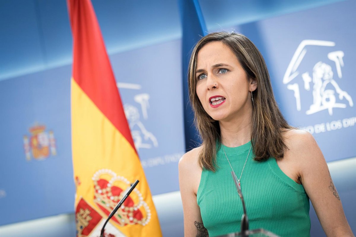 La secretaria general de Podemos, Ione Belarra,, durante una rueda de prensa en el Congreso de los Diputados, a 8 de julio de 2025, en Madrid (España). - Diego Radamés - Europa Press