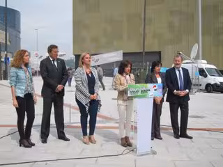 Asimismo, ha señalado que "desde aquí también nos abrimos al mundo con el nudo que nos comunica por tierra, mar y aire. Desde aquí se escribe cada día lo que hoy es actualidad y mañana es historia. Desde la nueva sede de la ETB, desde las redacciones de los muchos medios que han elegido asentarse a la sombra de otro símbolo único".