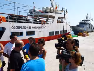 Los nacionalistas han denunciado "el secuestro" del barco 'Guernika', que forma parte de la segunda flotilla de la libertad de ayuda a Gaza --en el que están embarcados seis activistas gallegos junto a otros 40 voluntarios--, que está cercado por patrulleras y guardacostas griegos desde el viernes, quienes impiden su salida del puerto cretense de Kolimpary "obedeciendo a presiones de Israel".