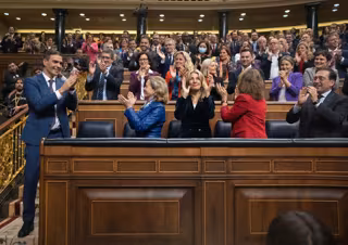 Sánchez recibió este jueves para su investidura el apoyo del 51% del Congreso: los 121 diputados del PSOE, los 31 de Sumar, los siete de ERC, los siete de Junts, los seis de Bildu, los cinco del PNV, el del BNG y la de Coalición Canaria. En contra votaron los otros 171 diputados de la Cámara Baja, que son los 137 del PP, los 33 de Vox y el de UPN.