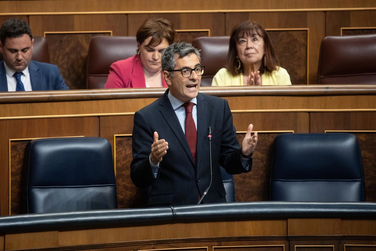 El ministro de Presidencia, Justicia y Relaciones con las Cortes, Félix Bolaños, ha anunciado este miércoles en el Congreso que el Gobierno aprobará "en las próximas semanas" la reforma de la ley que protege el Derecho al Honor con idea de garantizar una reparación a las víctimas de "difamaciones injustas". Además, ha aprovechado para pedir al diputado de Bildu Jon Iñarritu que retire sus acusaciones contra los magistrados en las que les sitúa como parte del 'lawfare'.