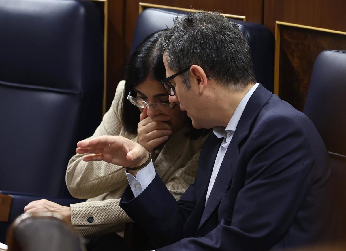 La ministra de Sanidad, Carolina Darias y el ministro de la Presidencia, Relaciones con las Cortes y Memoria Democrática, Félix Bolaños, durante una sesión plenaria en el Congreso de los Diputados, a 21 de septiembre de 2022, en Madrid (España). - Eduardo Parra - Europa Press