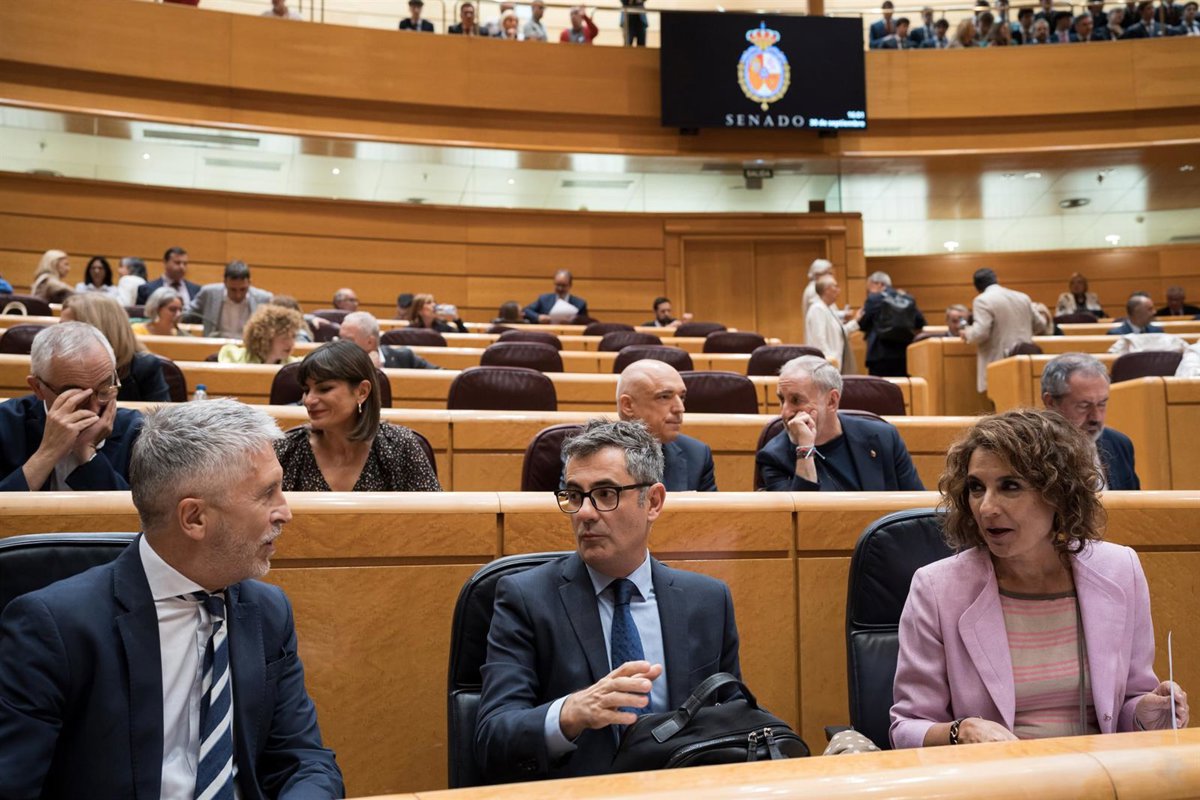 (I-D) El ministro del Interior, Fernando Grande-Marlaska; el ministro de la Presidencia, Justicia y Relaciones con las Cortes, Félix Bolaños y la vicepresidenta primera y ministra de Hacienda, María Jesús Montero, durante una sesión de control al Gobierno - Diego Radamés - Europa Press