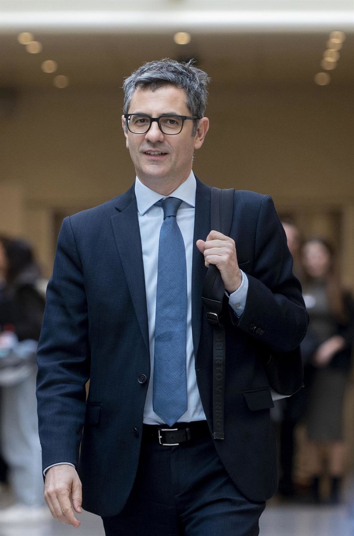 El ministro de la Presidencia, Justicia y Relaciones con las Cortes, Félix Bolaños, a su salida de una sesión de control al Gobierno, en el Senado, a 5 de marzo de 2024, en Madrid (España). - Alberto Ortega - Europa Press