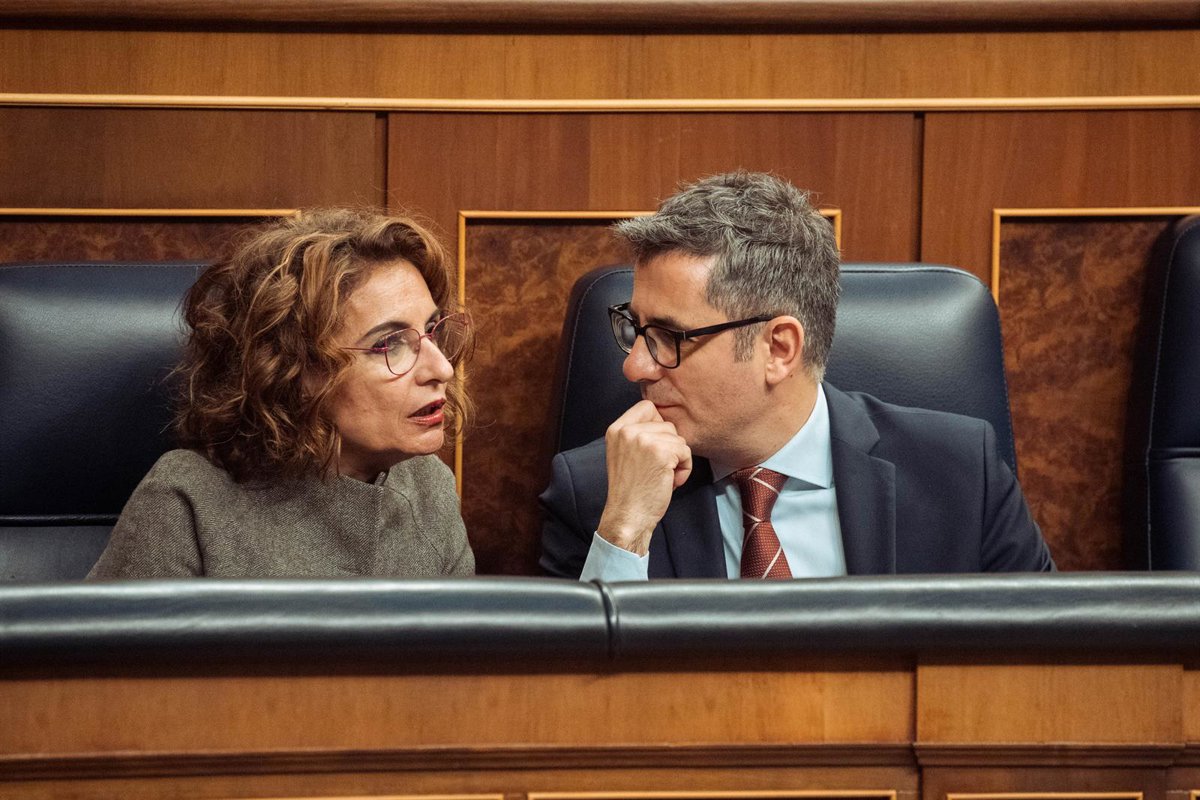La vicepresidenta primera y ministra de Hacienda, María Jesús Montero, y el ministro de la Presidencia, Justicia y Relaciones con las Cortes, Félix Bolaños, durante una sesión plenaria extraordinaria, en el Congreso de los Diputados, a 22 de enero de 2025 - Gabriel Luengas - Europa Press