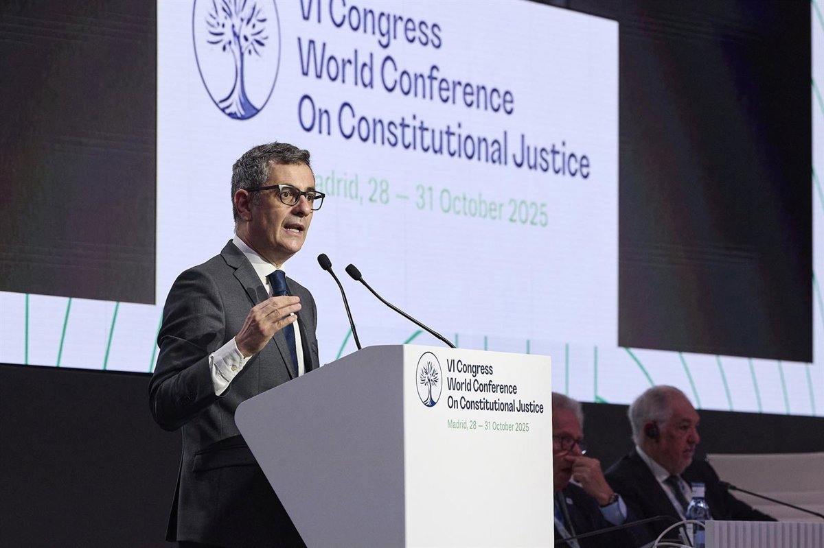 El ministro de la Presidencia, Justicia y Relaciones con las Cortes, Félix Bolaños, durante la VI Conferencia Mundial de Justicia Constitucional, a 29 de octubre de 2025, en Madrid (España). - Jesús Hellín - Europa Press
