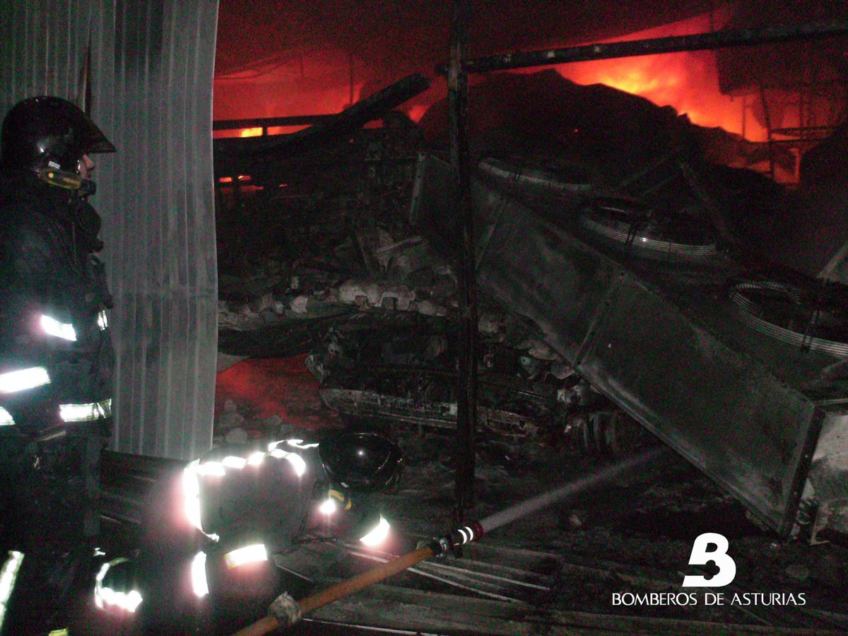 Cuando los bomberos llegaron al incidente, el fuego estaba muy avanzado por lo que, los efectivos, sólo pudieron atacar las llamas desde el exterior de las instalaciones. Debido a las altas temperaturas, la nave colapsó y la estructura metálica se precipitó la interior.