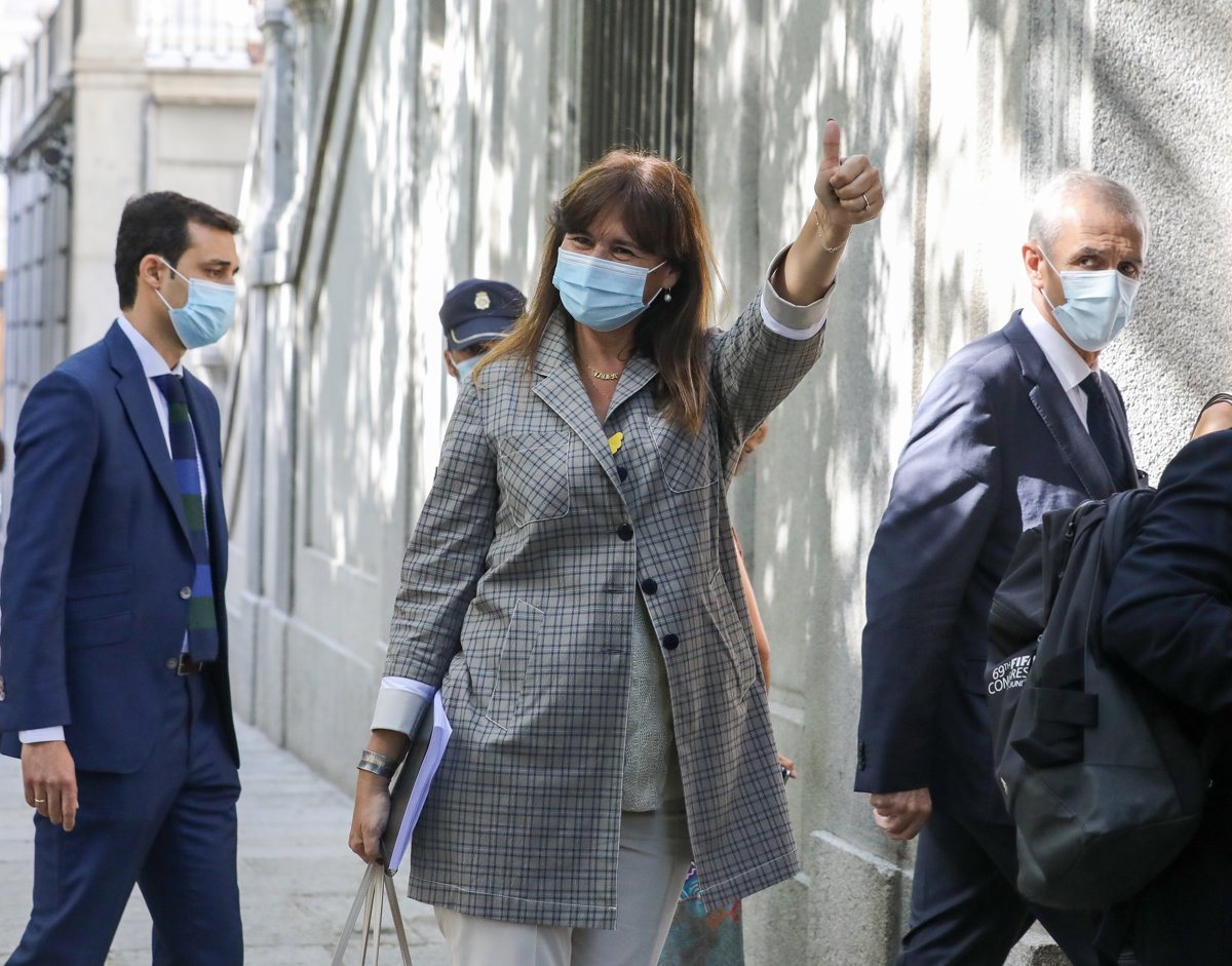 A su salida del alto tribunal, la delegación de diputados y senadores y una veintena de ciudadanos, entre ellos miembros de la Asamblea Nacional Catalana (ANC) y Ómnium Cultural, le ha recibido con aplausos acompañados de gritos que decían "no estás sola" y "no es justicia, es venganza".