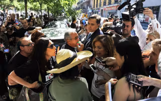 Botella se refería a la veintena de trabajadores públicos que la han recibido a su llegada al recinto a bocinazos, con dos grandes pancartas de fondo negro, una con un lema en defensa de la negociación colectiva y 'No a los recortes laborales sociales', y otra con la leyenda 'Ayuntamiento-Palacio' con nuestros impuestos', junto a las siglas de los sindicatos USO, UPM, CPPM, CSI-F, CC.OO., UGT, CGT, CITAM, CSIT.